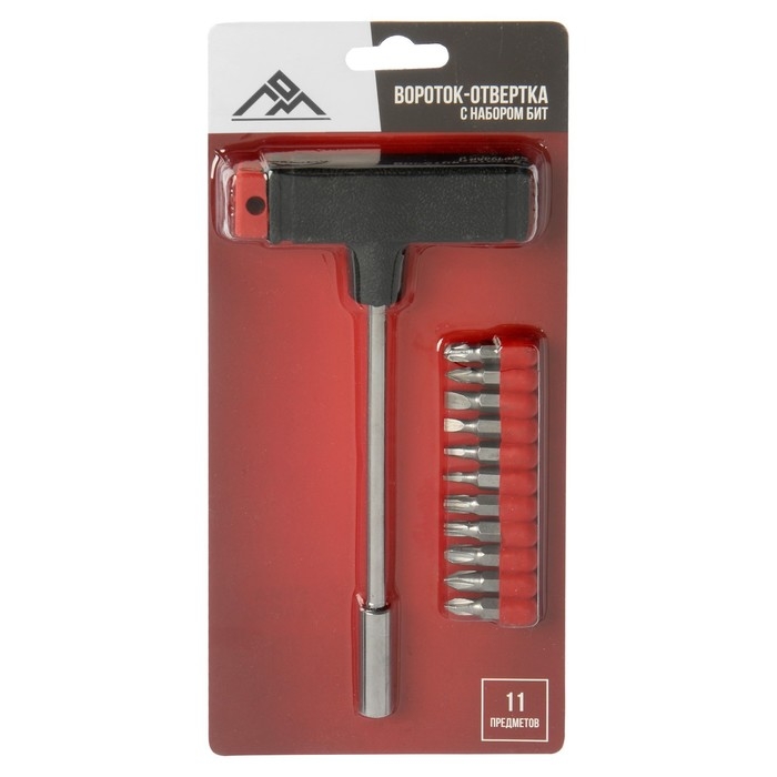 Отвертка с набором бит ЛОМ, Т-образный держатель, 11 предметов