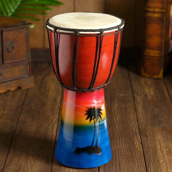 Сувенирный музыкальный инструмент барабан джембе "Пейзаж" 30х15х15 см МИКС