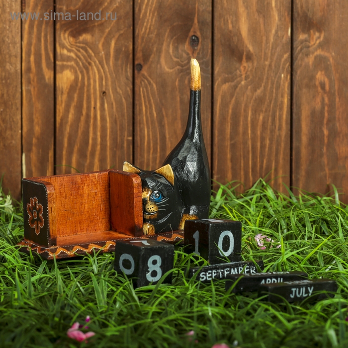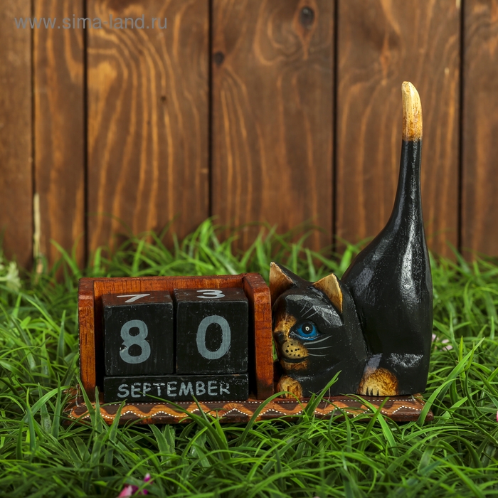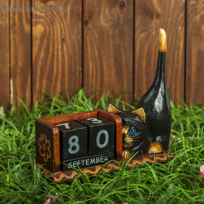 Календарь настольный «Тёмная кошка», 20.5×8.5×13.5 см, дерево