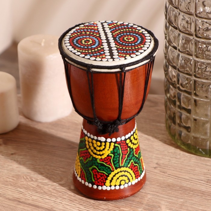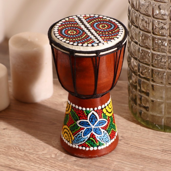 Сувенирный музыкальный инструмент "Барабан Джембе Цветочный узор" 11x11x20 см МИКС