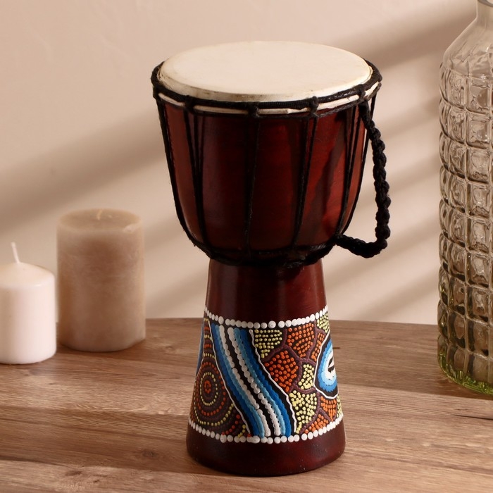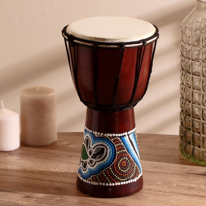 Сувенирный музыкальный инструмент "Барабан Джембе узорчатый" 30х16х16 см МИКС