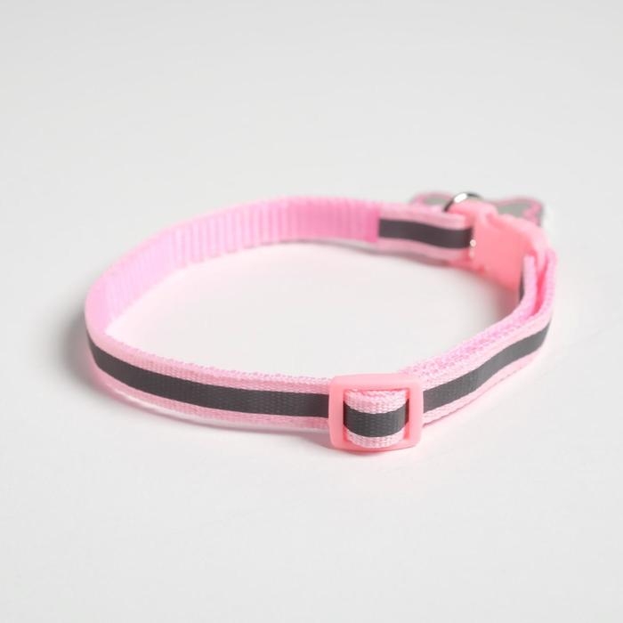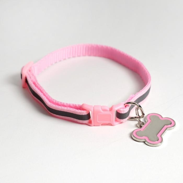 Ошейник светоотражающий с адресником, 30×1 см, капрон, розовый