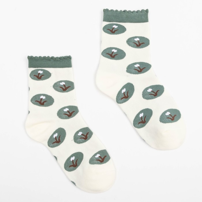 Носки женские MINAKU «Подснежники», цвет зелёный, размер 36-39 (23-25 см)