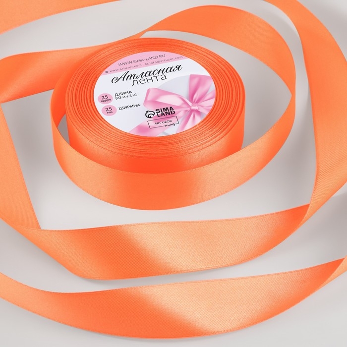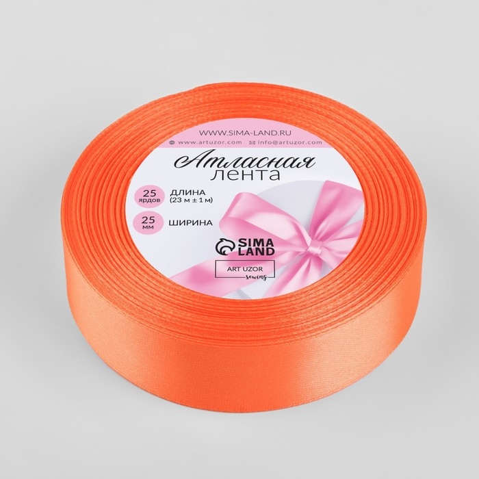 Лента атласная, 25 мм × 23 ± 1 м, цвет морковный №22