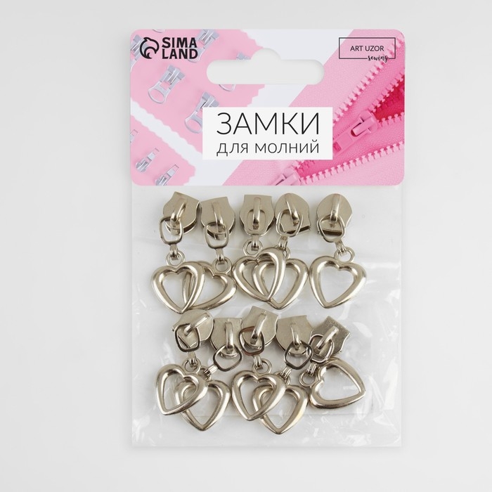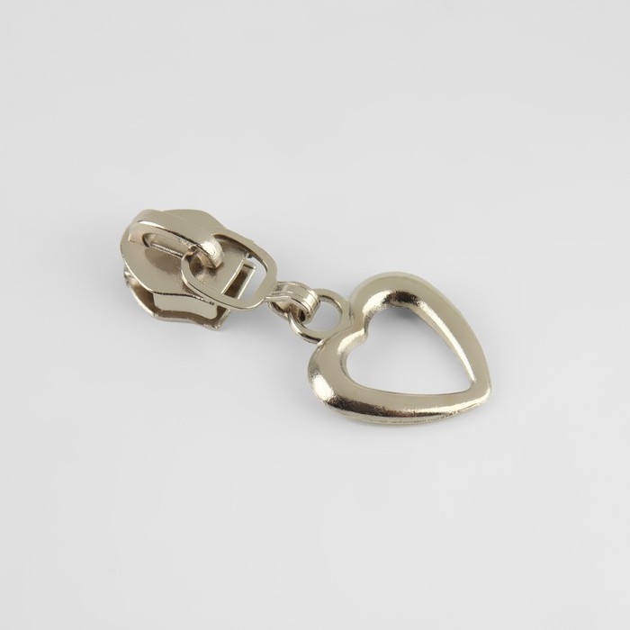 Бегунок галантерейный для молнии «Спираль», №5, декоративный «Сердце», 10 шт, цвет никель