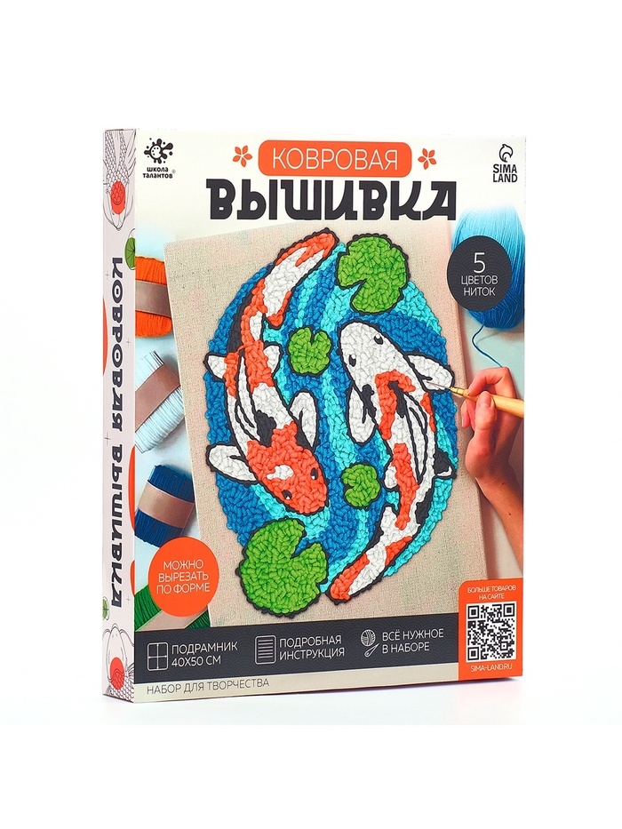 Школа талантов Набор для творчества Ковровая вышивка Карпы, подрамник