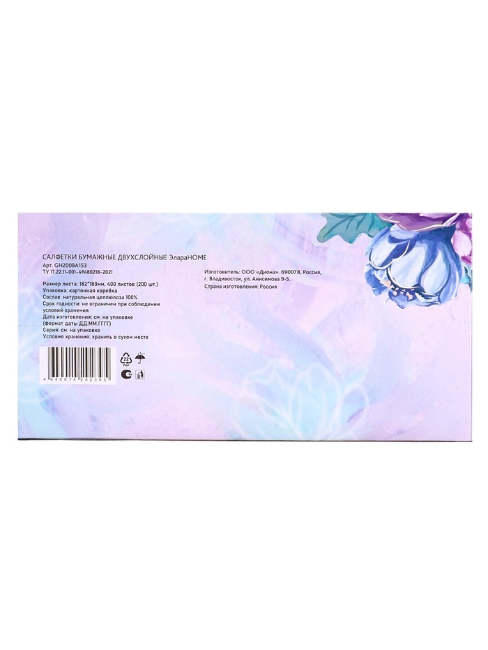 Салфетки бумажные в коробке Элара HOME "Цветочный танец", 200 шт.