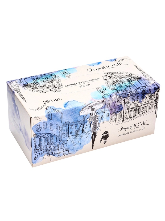 Салфетки бумажные в коробке Элара HOME "Вечер в Париже", 250 шт.