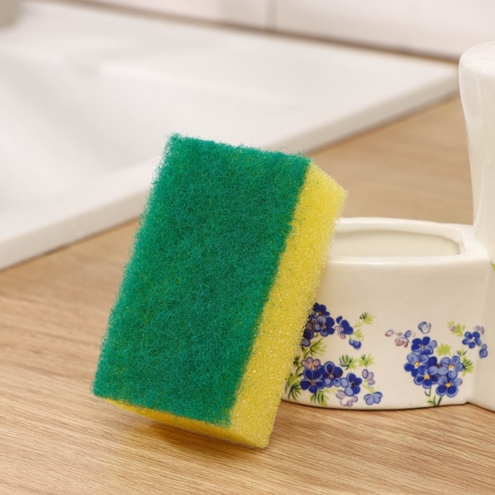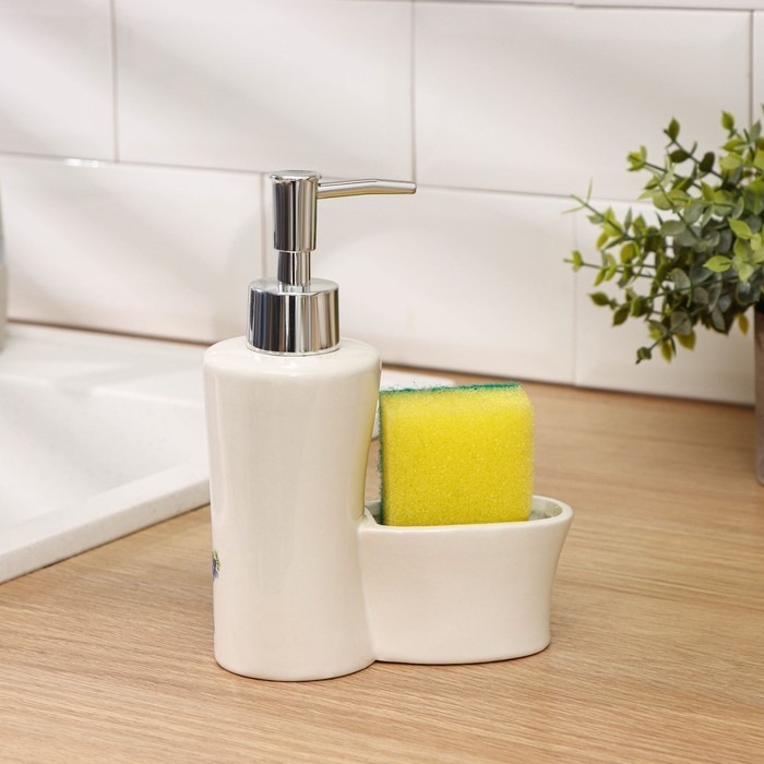 Дозатор для моющего средства с подставкой для губки Доляна, губка в комплекте, 385 мл, цвет белый