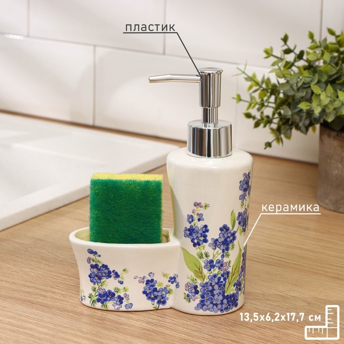 Декорированные прелестным орнаментом, изделия украсят знакомую обстановку и создадут позитивное настроение. Хозяйкам непременно понравится специальное отделение для комфортного хранения губки непосредственно в дозаторе.