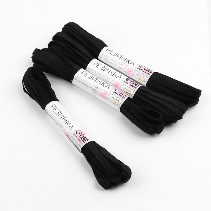 Резинки вязаные, 8 мм, 4.5 м, 4 шт., чёрные