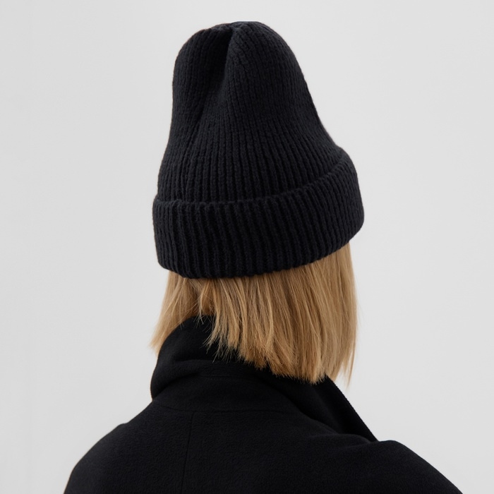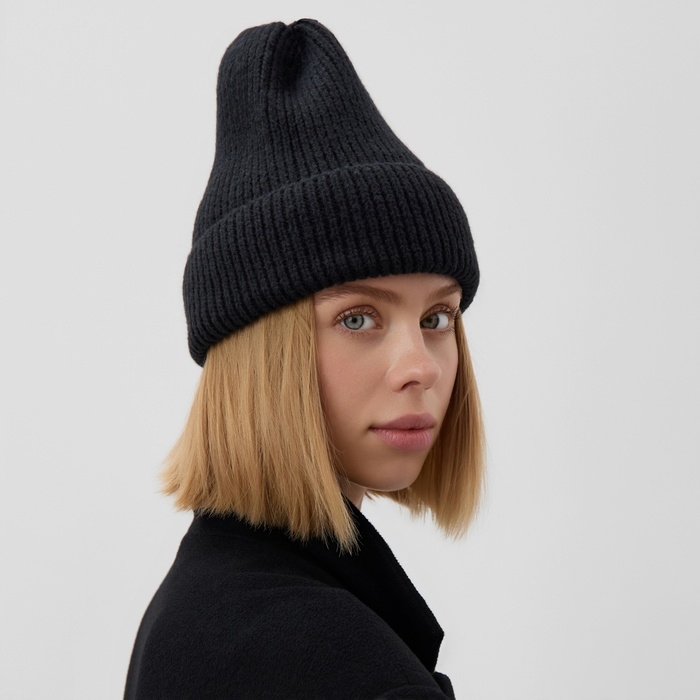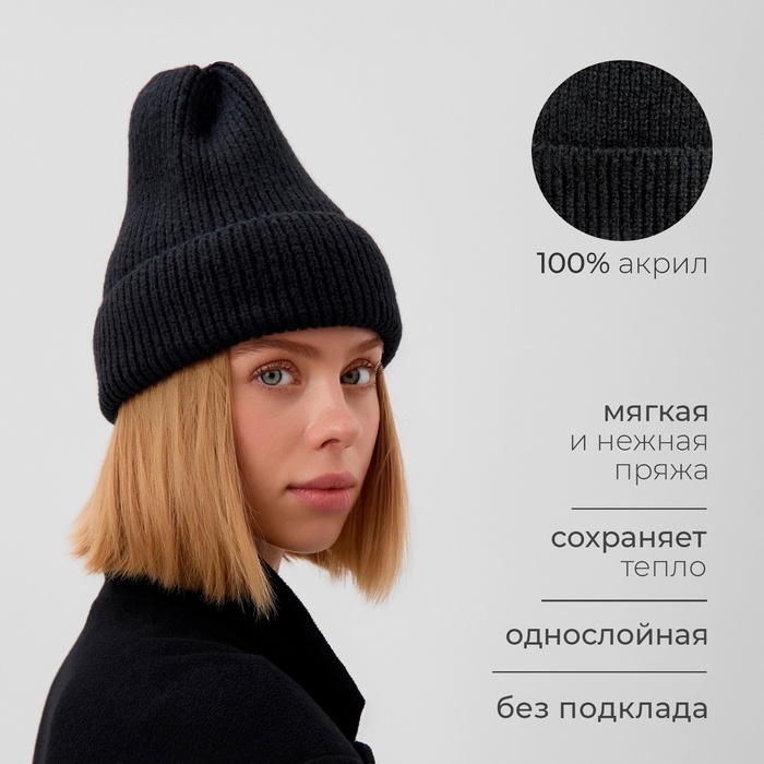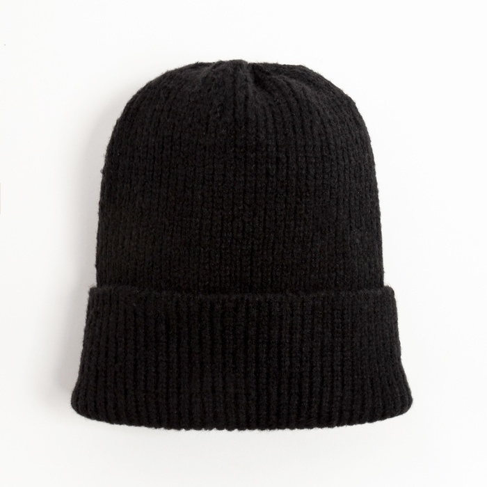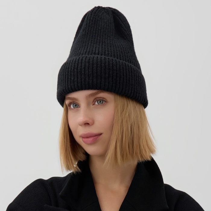 Шапка женская MINAKU с отворотом, размер 54-56, цвет чёрный
