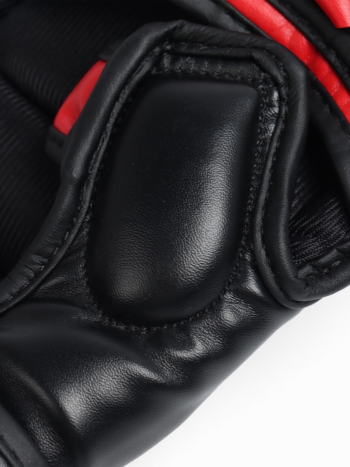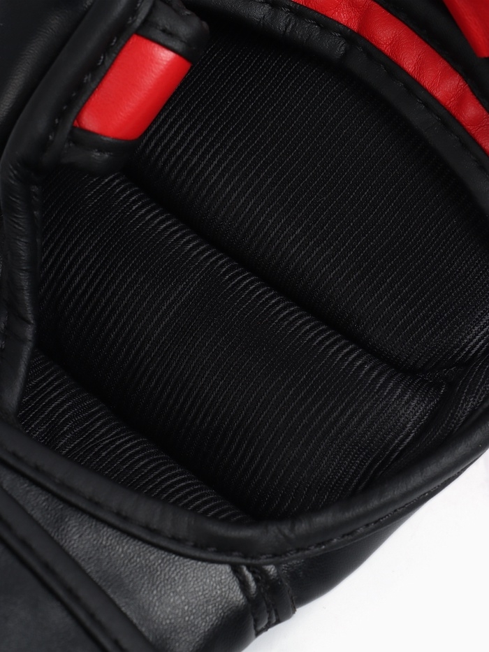 Перчатки для смешанных единоборств защищают кисти рук при ударах. Открытые фаланги позволяют бороться, не стесняя движений. На перчатках также есть дополнительная защита большого пальца. Анатомический крой повторяет естественную форму кулака. Сетчатая вставка обеспечивает вентиляцию и влагоотведение. Широкий ремень с липучкой плотно прилегает к руке и предотвращает риск возникновения травмы запястья.