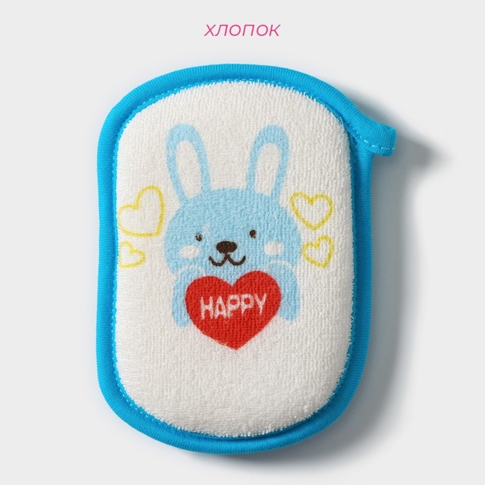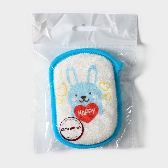 Мочалка детская для купания Доляна «Заяц», 12×8 см, цвет синий