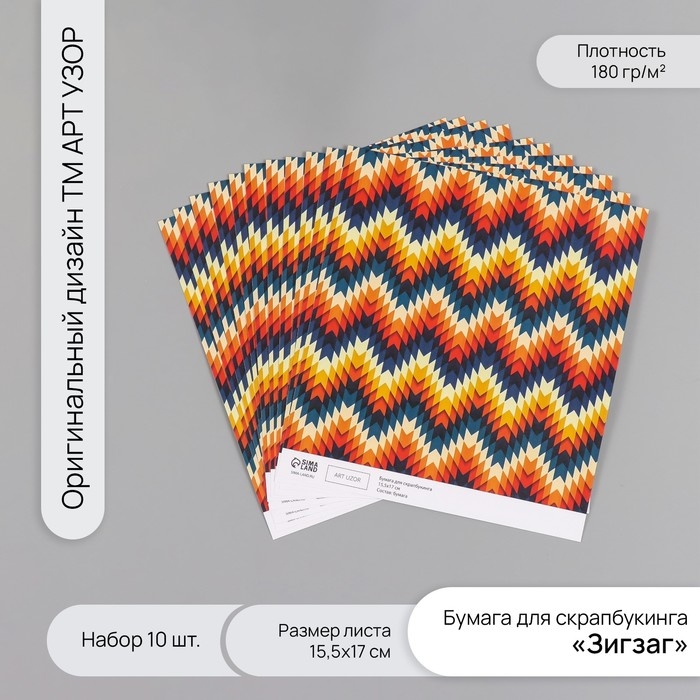 Бумага для скрапбукинга "Зигзаг" плотность 180 гр набор 10 шт 15,5х17 см
