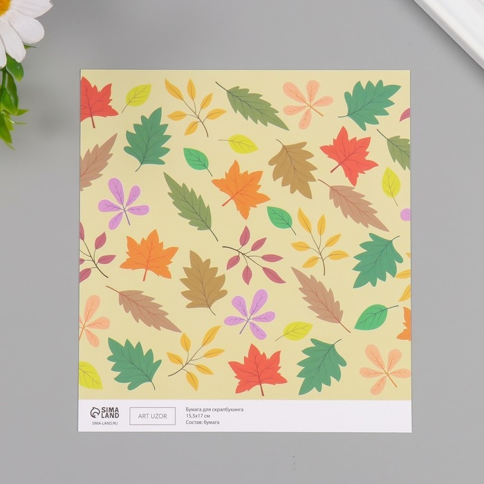 Бумага для скрапбукинга двусторонняя "Листья" плотность 180 гр набор 10 шт 15,5х17 см
