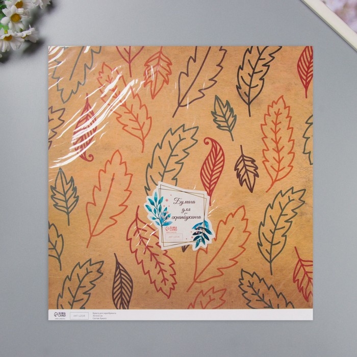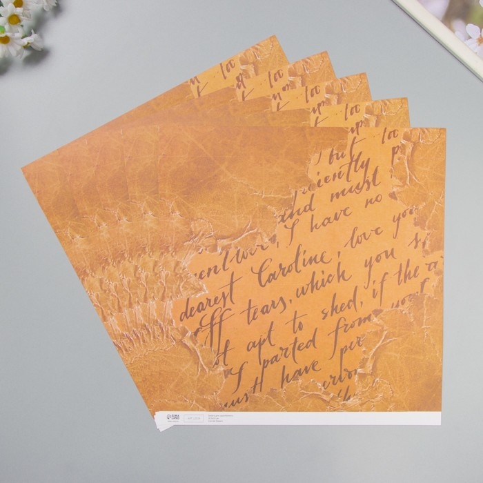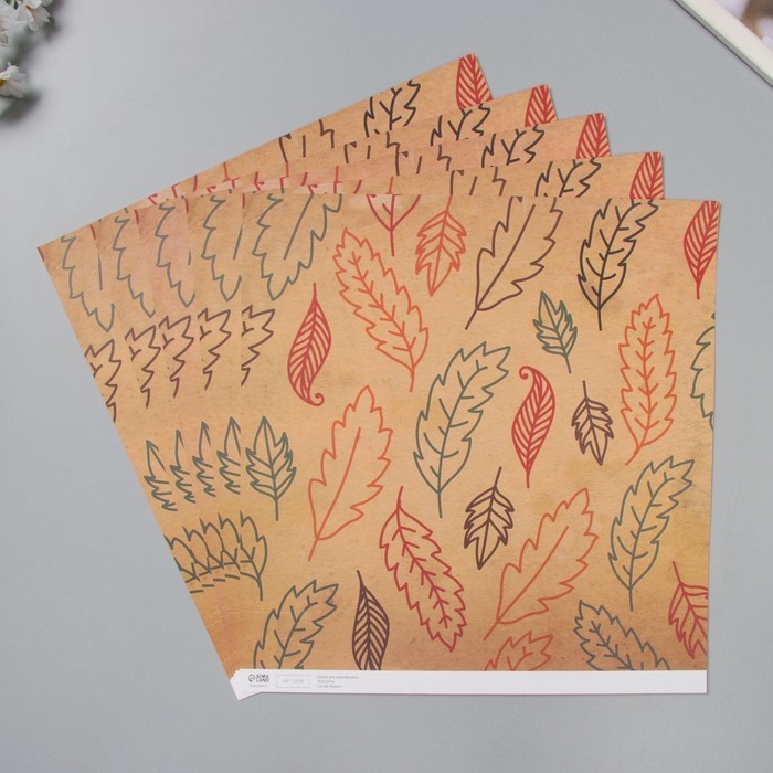 Бумага для скрапбукинга двусторонняя "Листья и рукопись" плотность 180 гр набор 5 шт 30,5х32 см 10