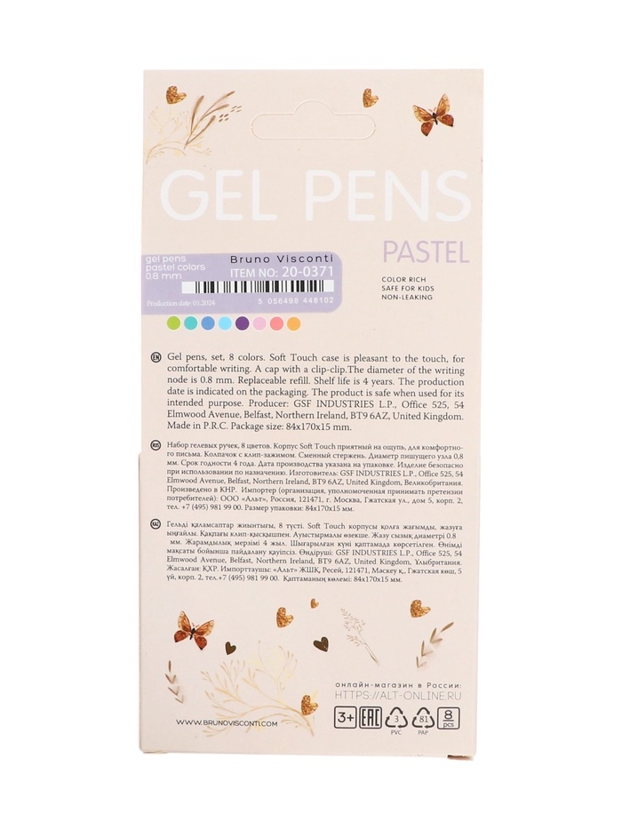 Набор гелевых ручек 8цв PASTELS.LOVE ME. Котики приносят счастье, 0.8мм