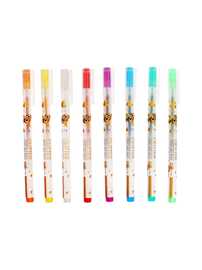 Набор гелевых ручек 8цв GLITTER. LOVE ME. Милый котик, 1.0мм, с блестками