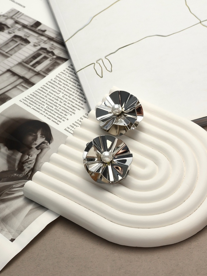 Клипсы «Тренд» объёмный цветок, цвет серебро
