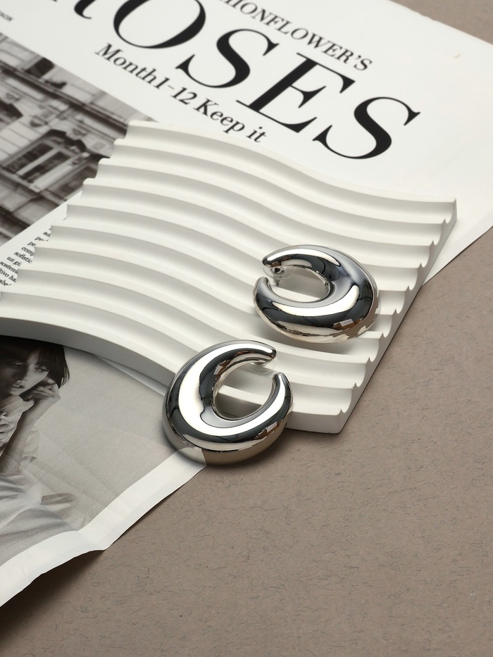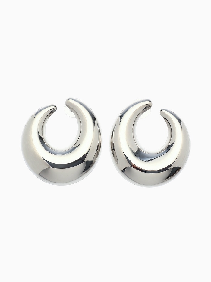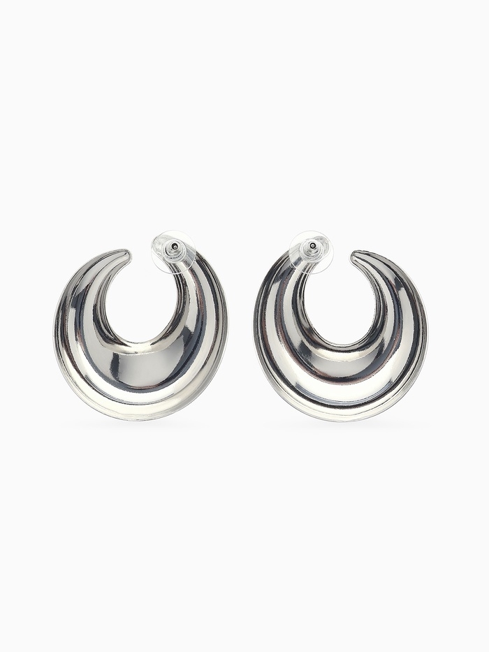 Серьги металл «Кольца» полумесяц, цвет серебро