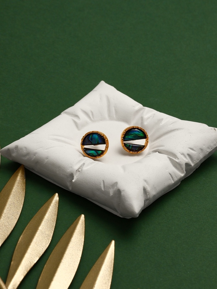 Серьги «Галиотис» круг, зелёные в золоте