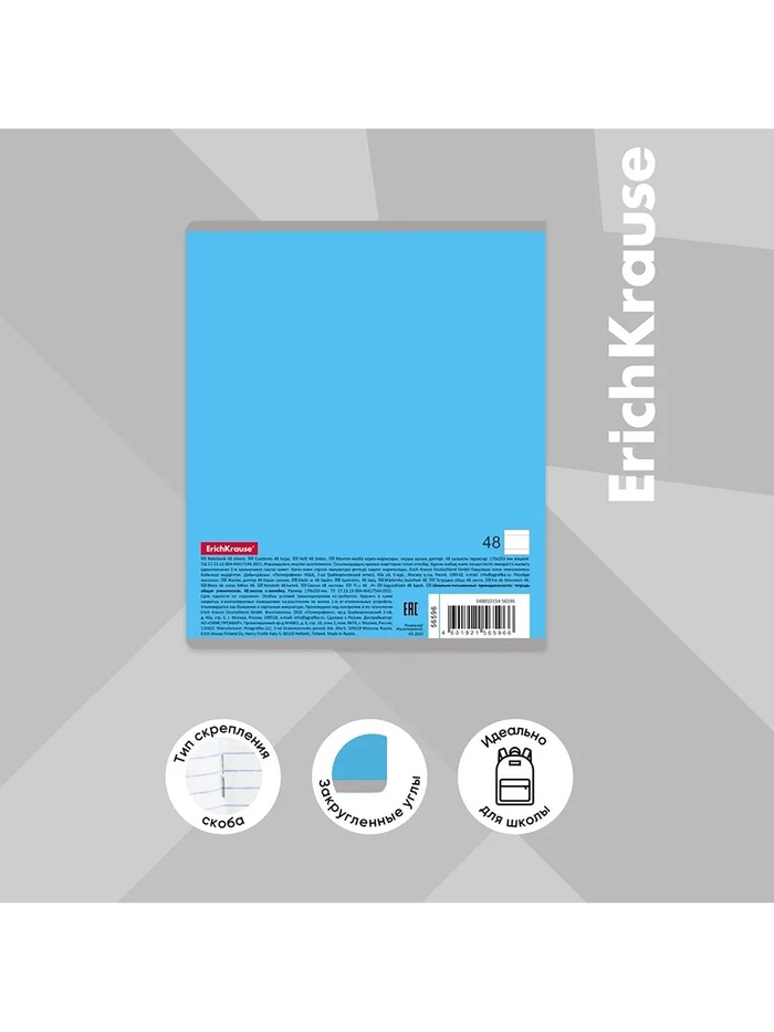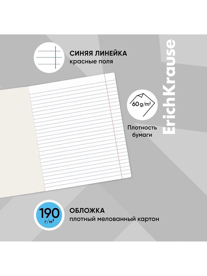 Тетрадь 48 листов в линейку ErichKrause, обложка мелованный картон, блок офсет, 100% белизна, МИКС