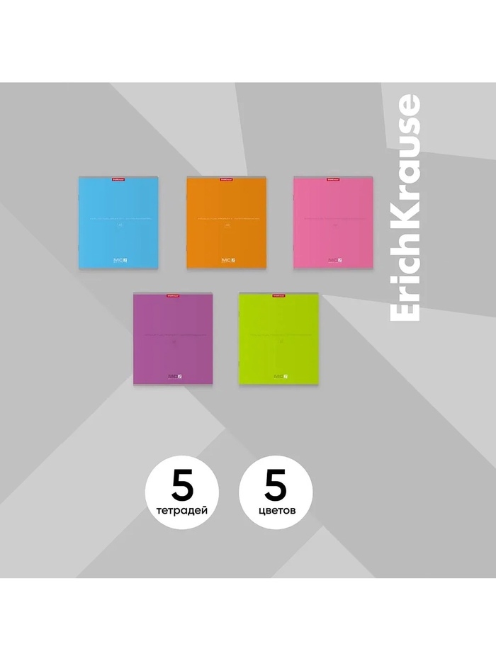 Тетрадь общая формата А5+ (170х203 мм). Обложка из высококачественного мелованного картона. В блоке 48 листов в линейку с полями. Тетради одного цвета упакованы в термоусадочную пленку по 5 штук. Товар поставляется в нескольких вариантах цвета без возможности выбора.