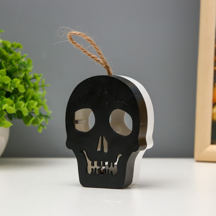Ночник "Череп" LED 1Вт RGB от батареек LR1130 бело-черный 9,5х4х5см RISALUX