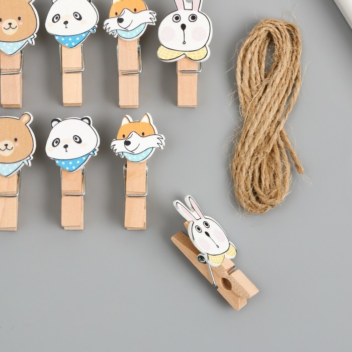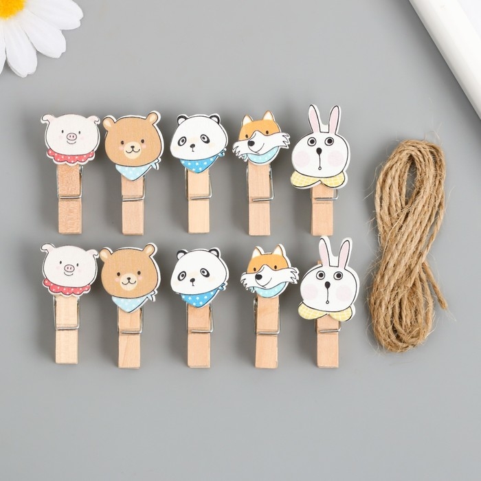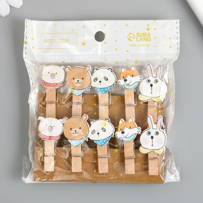 Декор для творчества дерево "Прищепка. Зверята в платочках" набор 10 шт 3,8х2х1,2 см