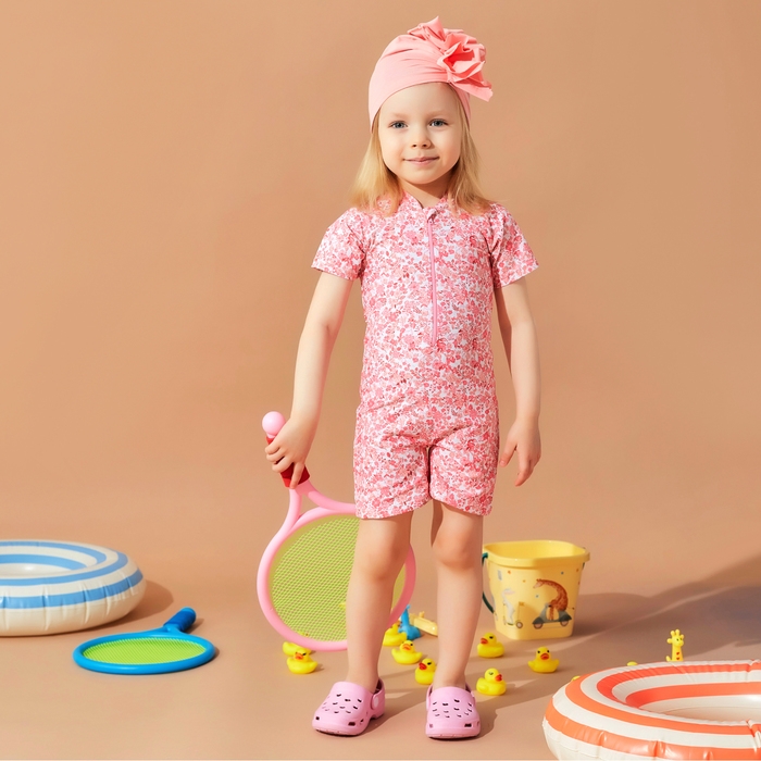 Купальный костюм детский Крошка Я «Цветочки» рост 98-104 см, розовый
