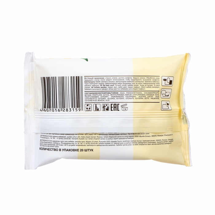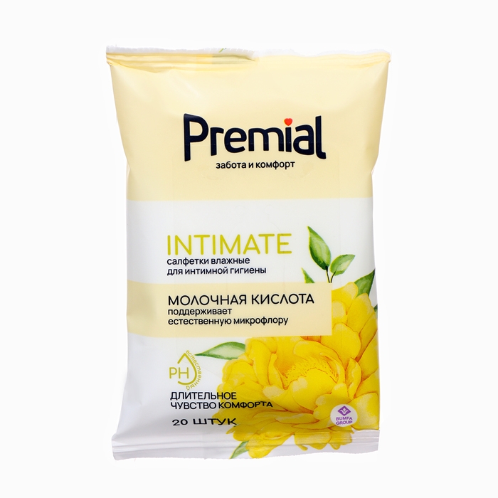 Влажные салфетки Premial, для интимной гигиены с молочной кислотой, 20 шт.