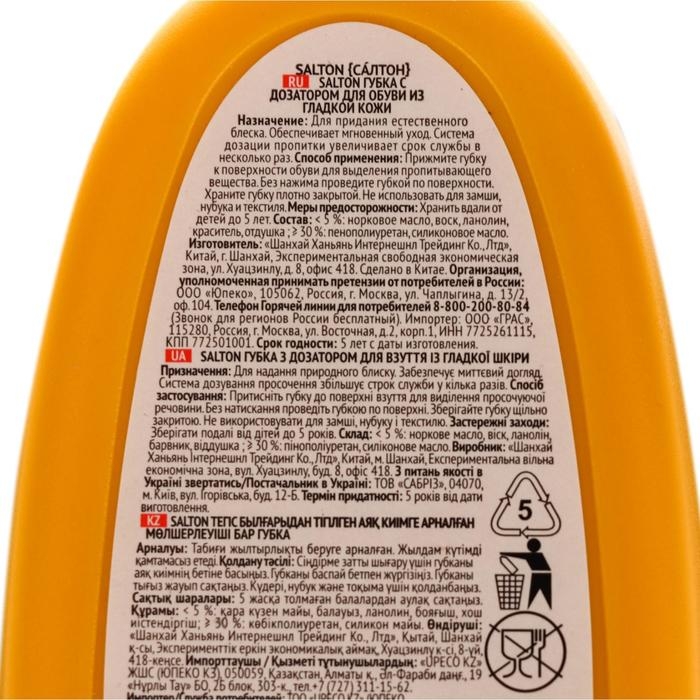 Губка для обуви Волна SALTON для гладкой кожи с дозатором Бесцветная