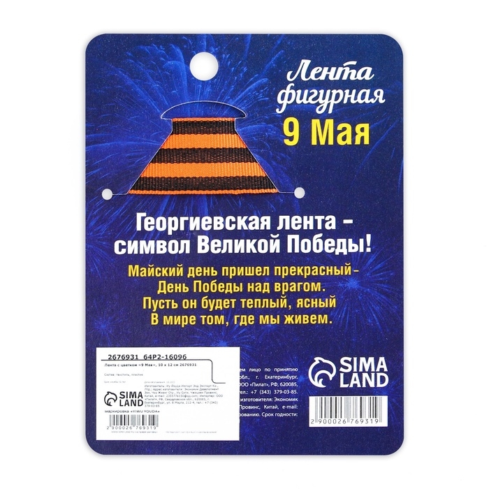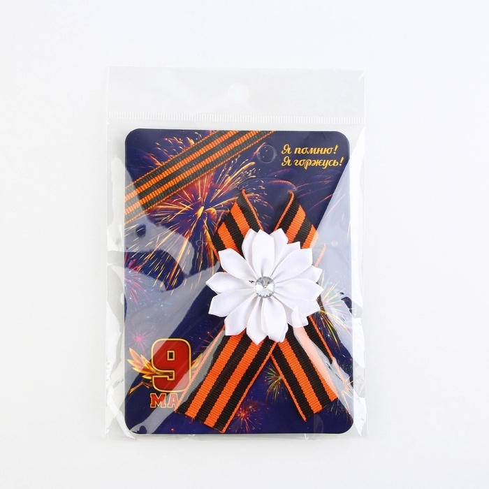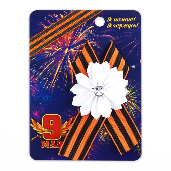 Георгиевская лента - это символ Великой Победы! Лента дополнена декоративным тканевым цветком и стразой, закрепить ее можно с помощью булавки (В КОМПЛЕКТ НЕ ВХОДИТ).