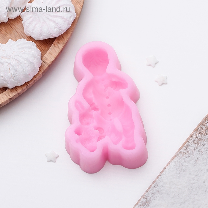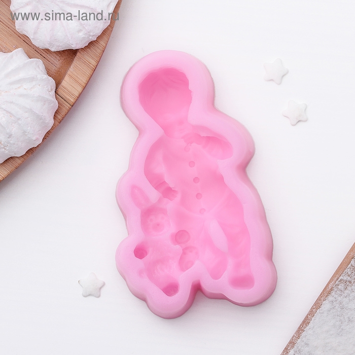 Молд «Мальчик и зайчик», силикон, 9,1×5,4×2,1 см, цвет розовый
