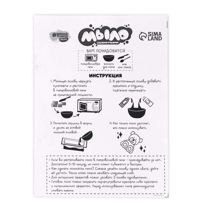 Набор для творчества позволит создать ароматное мыло с сюрпризом. Все необходимые компоненты уже есть в комплекте.