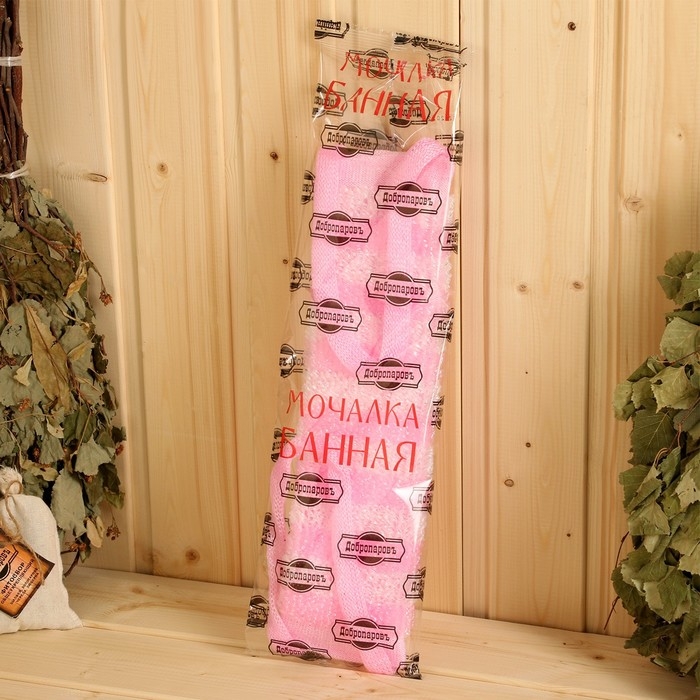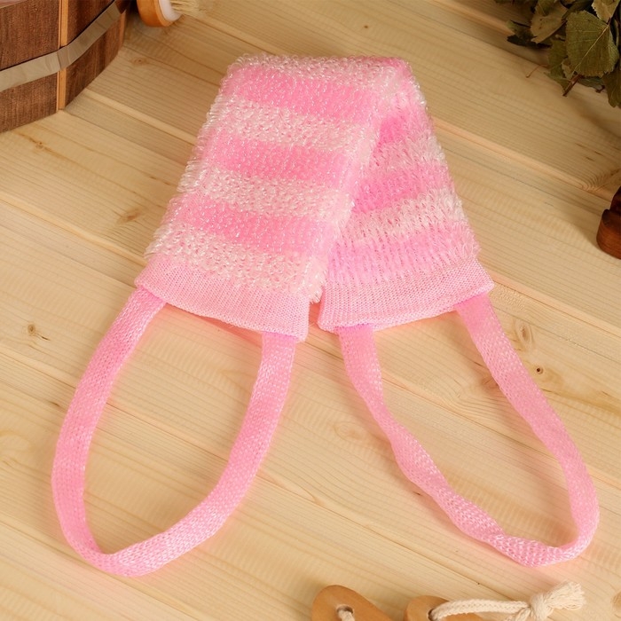Мочалка банная с ручками "Пояс" бело-розовая (36 см без ручек) Добропаровъ