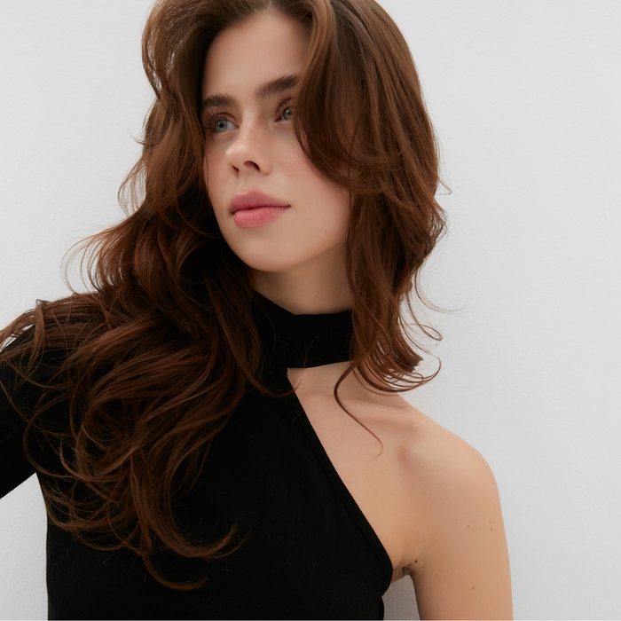 Лонгслив женский на одно плечо MINAKU: Basic line цвет чёрный, размер 44