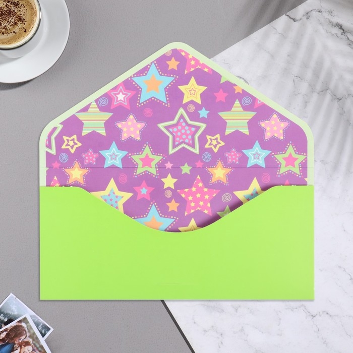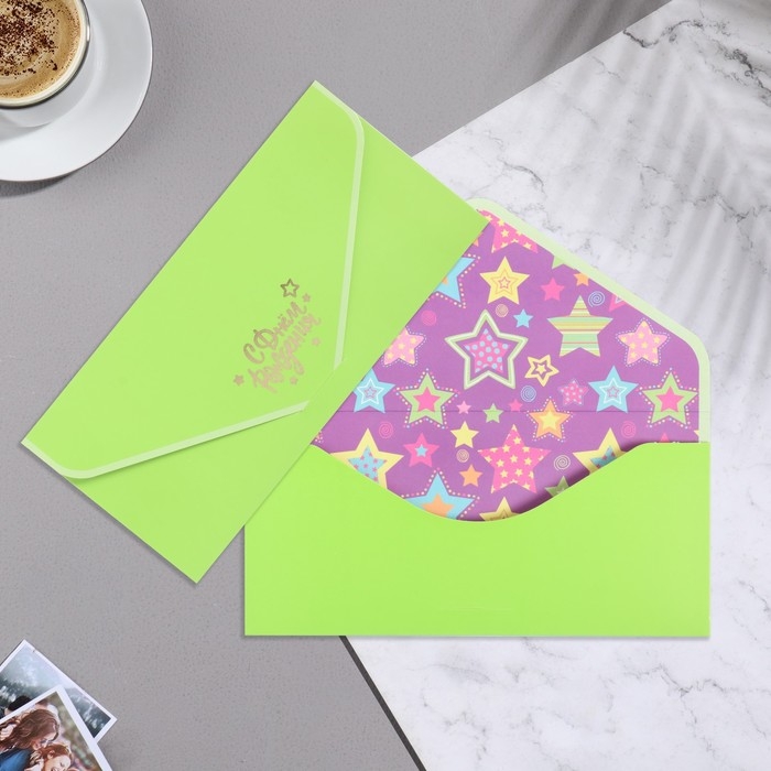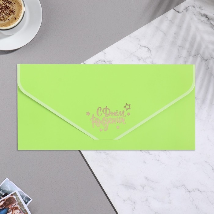 Конверт для денег "С Днем Рождения!" зеленый фон, бархат, тиснение, 19х9 см