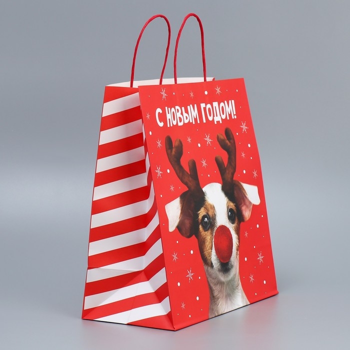 Пакет подарочный новогодний крафтовый «Олень ты», 28 х 32 х 15 см
