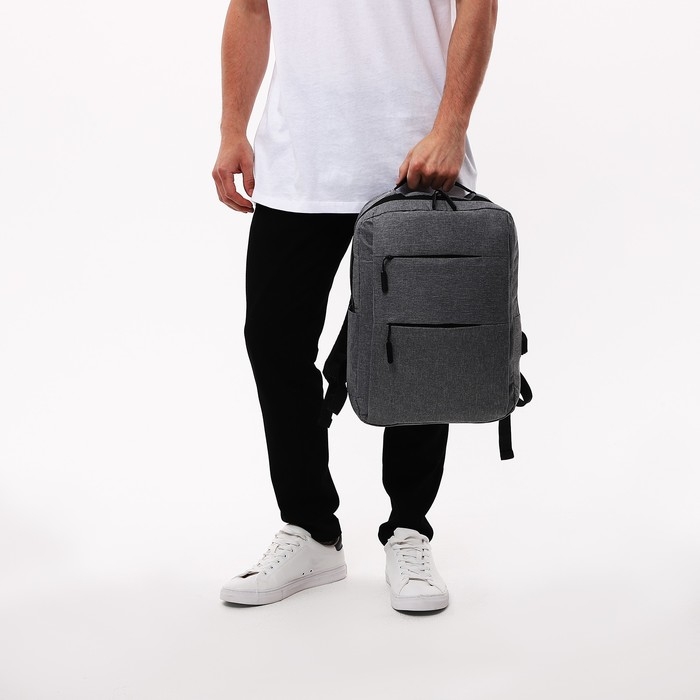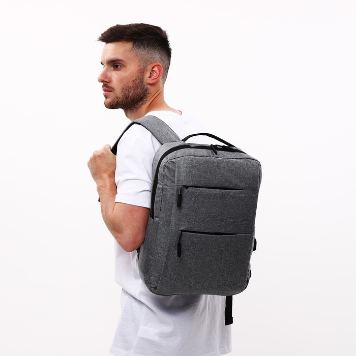 Рюкзак мужской на молнии, 4 наружных кармана, с USB, цвет серый