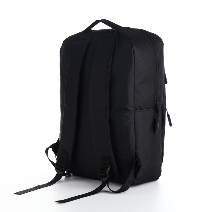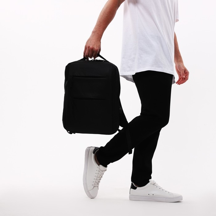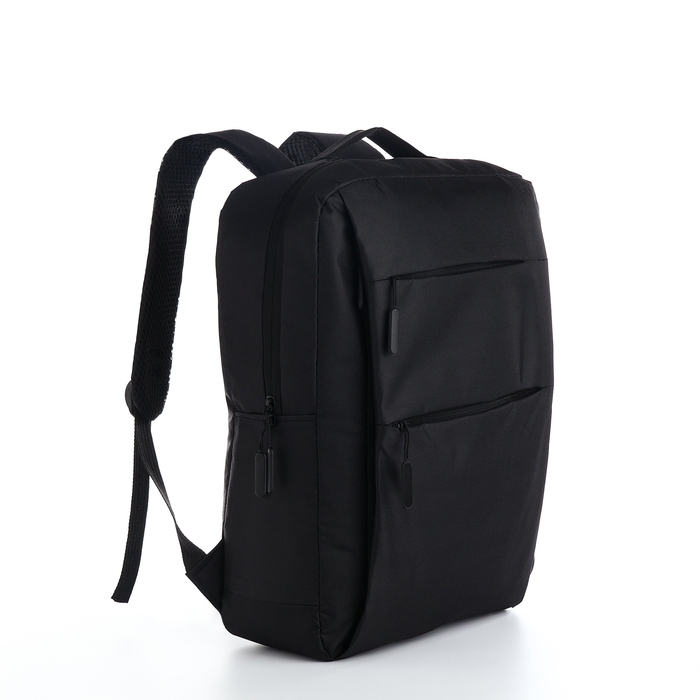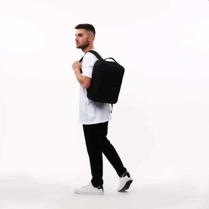 Рюкзак мужской на молнии, 4 наружных кармана, с USB, цвет чёрный