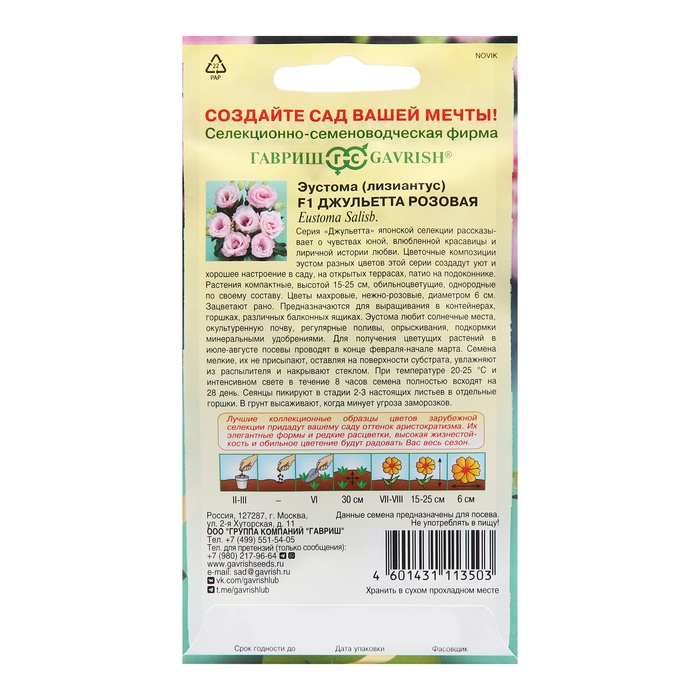 Семена Эустома "Джульетта розовая", ц/п, F1, 4 шт.