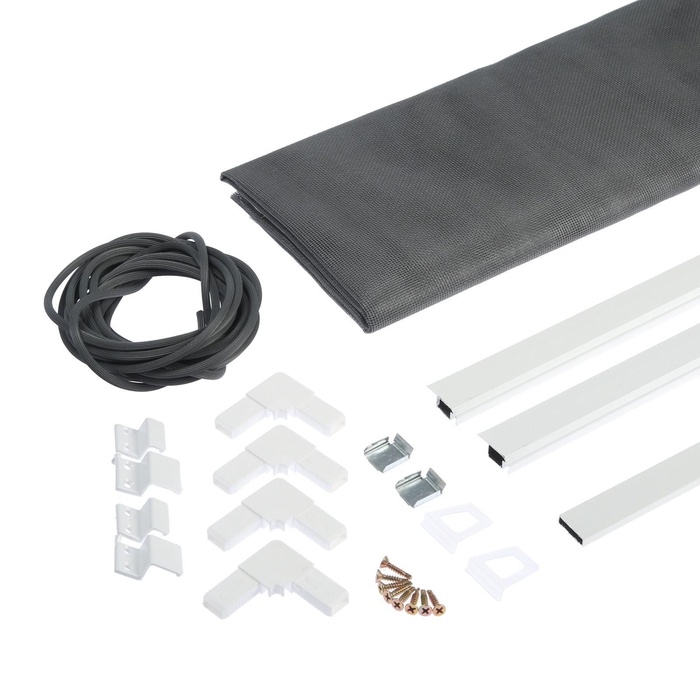Москитная сетка на окна ТУНДРА для сам. сборки, до 2 м, сетка 1.2×1.4 м, профиль 2×2 м, белый