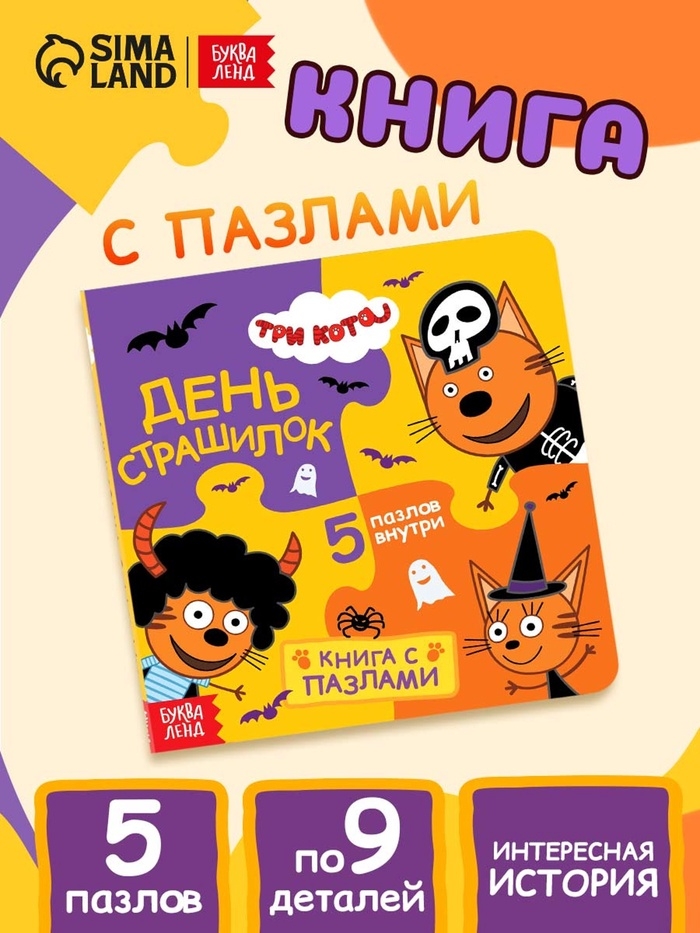 Книга картонная с пазлами "День страшилок", 12 стр., Три кота
