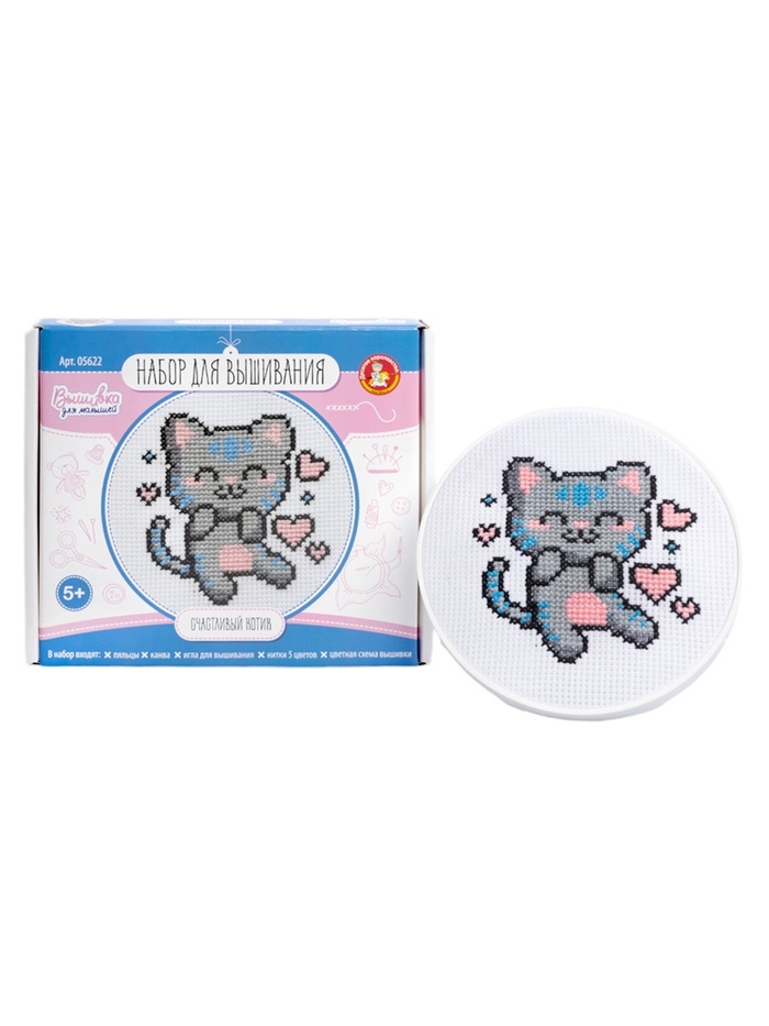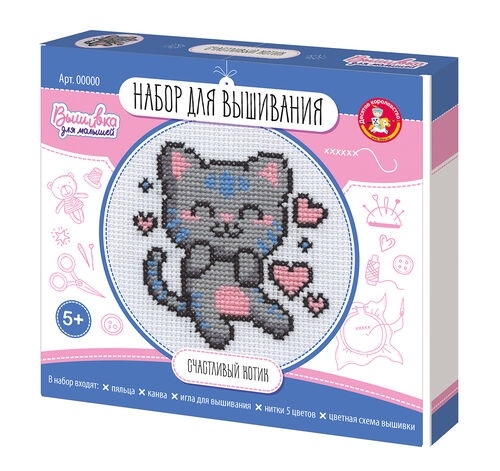 Набор для творчества. Вышивка "Счастливый котик" (с пяльцами) 05622