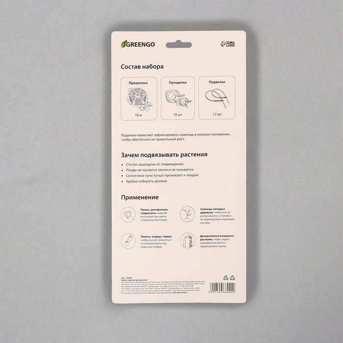 Набор для крепления растений: проволока - 18 м, прищепки - 18 шт., подвязки 24 см - 12 шт., Greengo