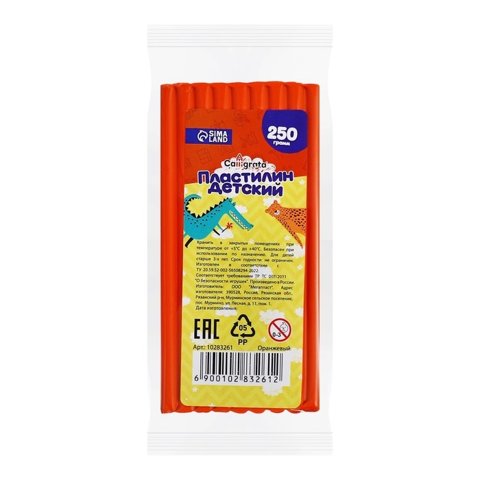 Пластилин 250г Calligrata Классический, оранжевый