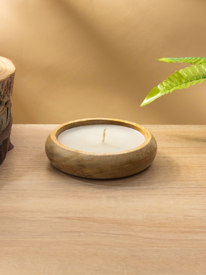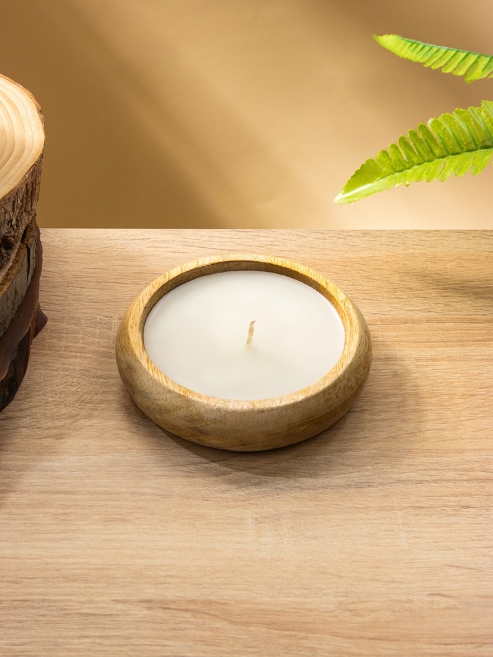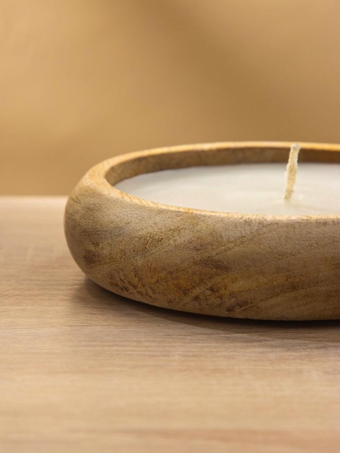 Свеча в деревянной чаше, парафин и соевый воск 12,5х12,5х2,5 см