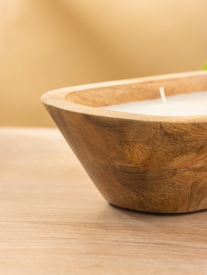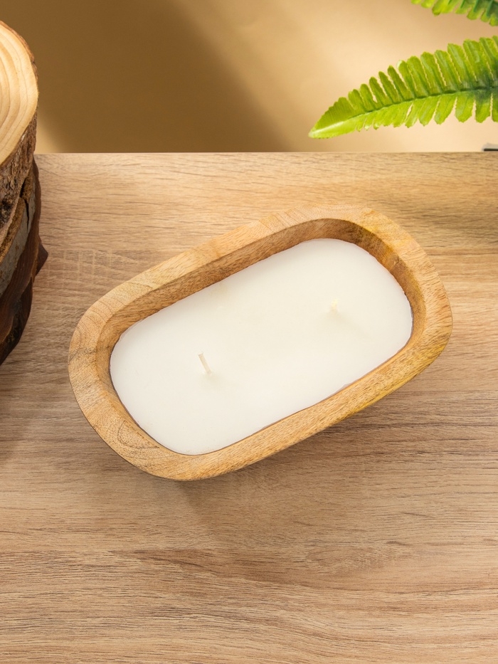 Свеча в деревянной чаше, парафин и соевый воск 20х13х5,5 см